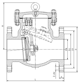 高溫珞鉬鋼WC1/WC6/WC9旋啟式止回閥外形尺寸圖