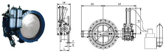 蓄能器式(緊急切斷)快關(guān)蝶閥產(chǎn)品圖 蓄能器式(緊急切斷)快關(guān)蝶閥外形尺寸圖